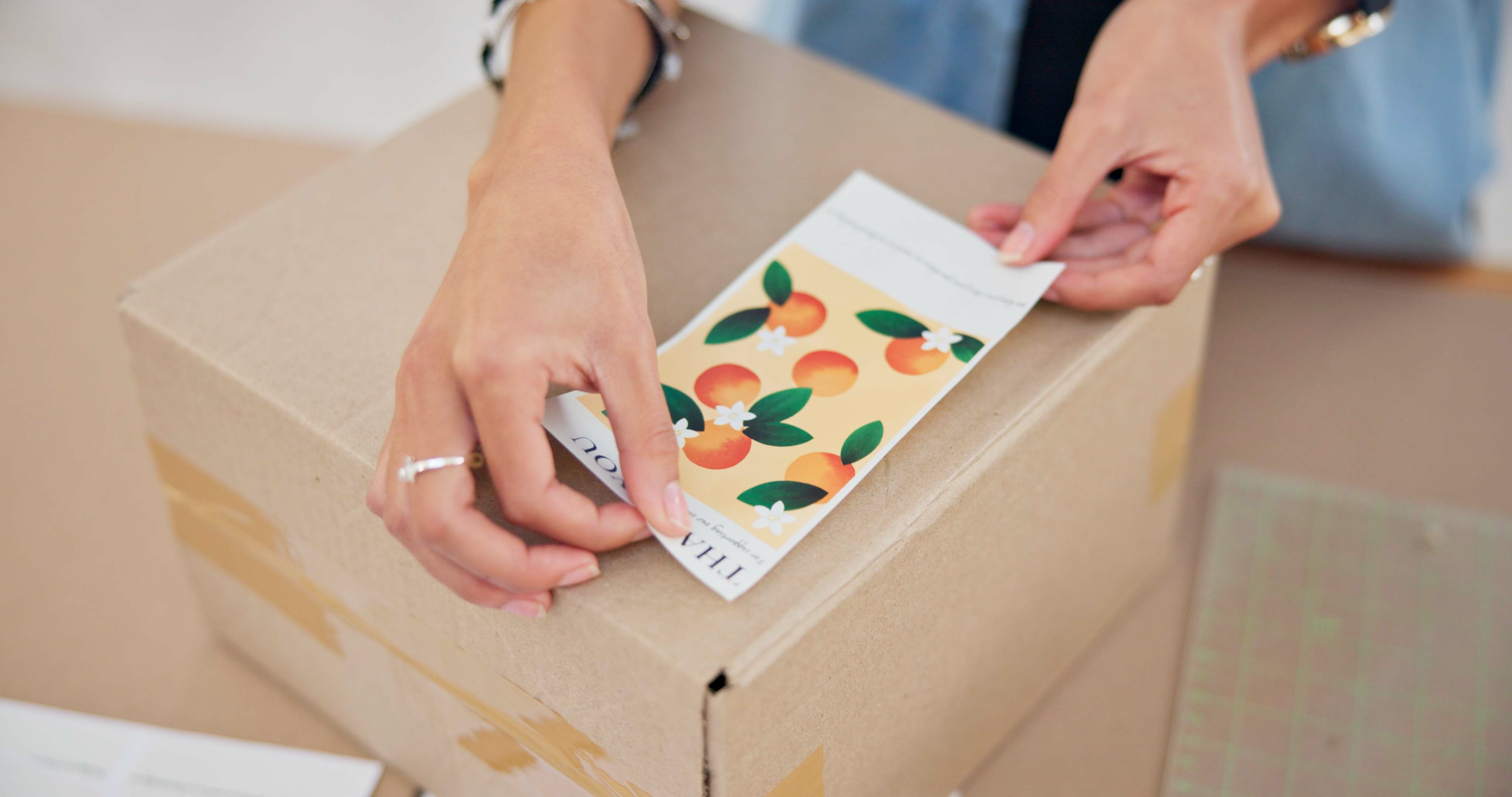 Pre-stamp or sticker boxes and envelopes with your branding.